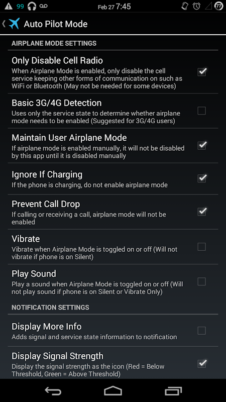 The phone will expend a lot of battery searching for a signal to use. Auto Pilot Mode prevents this from happening by automatically enabling Airplane Mode for a specified amount of time when the signal falls below a threshold.