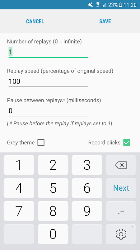 NOTE: The tap recorder is intended only for recording taps/clicks - not swipes or long presses, and also not clicks on the system buttons (Back, Home, Recent Activities). Also, the recorder is intended for recording sequences of taps within the same app (including all of its windows).