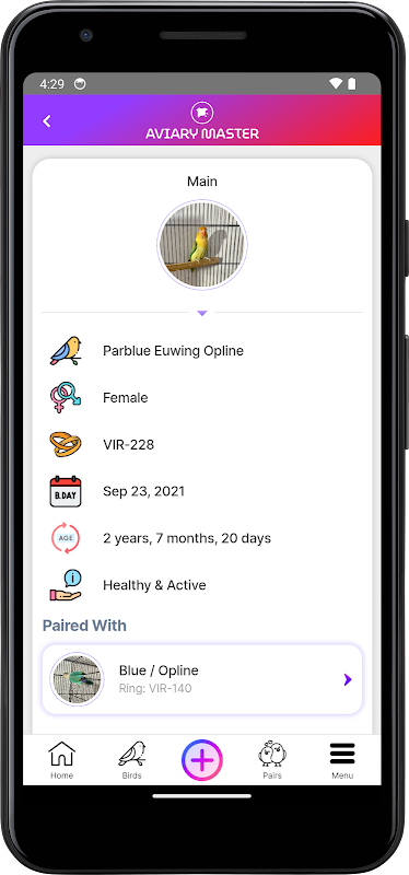 Aviary Master se présente comme l'application ultime de gestion de volière, effaçant la frustration des documents papier perdus, des feuilles de calcul confuses et des notes de calendrier dispersées. Cet outil complet simplifie la gestion de vos oiseaux, accouplements, œufs et élevages en offrant une solution numérique transparente. Téléchargez sans effort vos données de volière sur le cloud et accédez-y facilement depuis divers appareils. Avec Aviary Master, les passionnés d'oiseaux peuvent suivre et nourrir efficacement leurs compagnons à plumes, ce qui rend la gestion des oiseaux un jeu d'enfant.