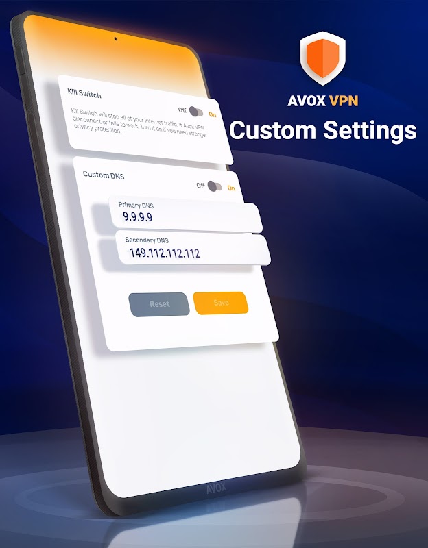 Pour les utilisateurs qui ont besoin d'un contrôle avancé, Avox VPN vous permet de configurer les paramètres DNS directement dans l'application.