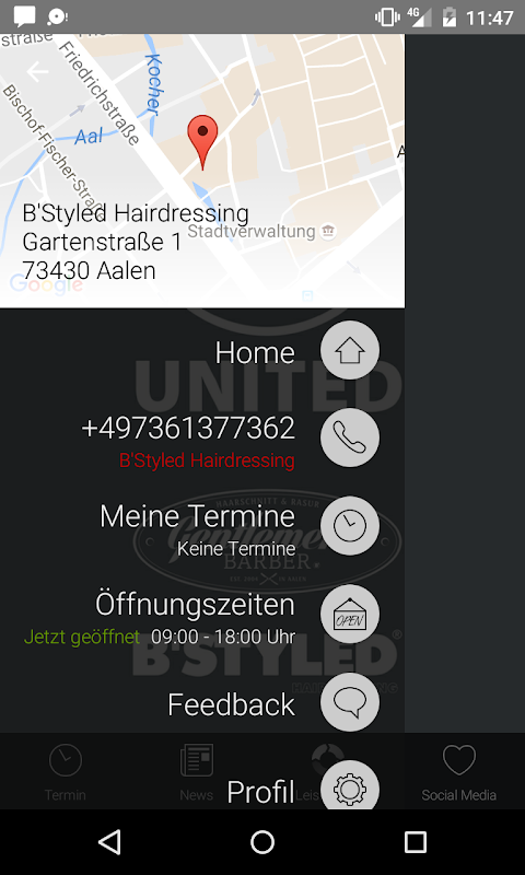 L'application B'Styled est conçu pour tous les fans, les mécènes et amis de la tendance Barber à Aalen "Dressing B'styled Hair".