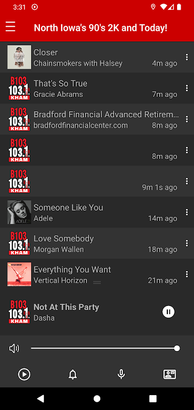 B103 KHAM est la référence du soft rock dans le nord de l'Iowa ! Suivez les dernières actualités, la météo, les événements locaux, les événements sportifs et bien plus encore ! Découvrez la playlist de B103 KHAM, enregistrez un message, utilisez B103 comme alarme et, bien sûr, écoutez-la en direct en téléchargeant l'application dès aujourd'hui ! B103 KHAM est VOTRE station !