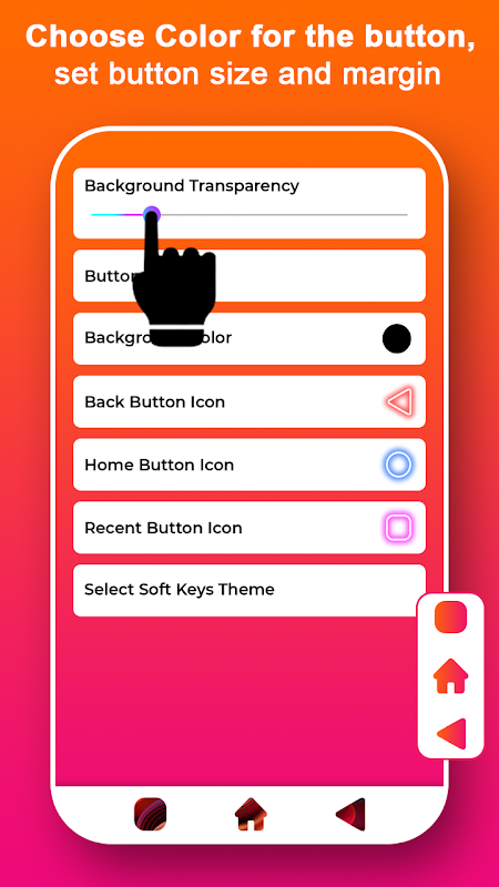BackButton-Anywhere(No Root) enables you to customize your navigation bar by applying different themes on navigation bar.you can set Height, Width and color of the navigation bar.