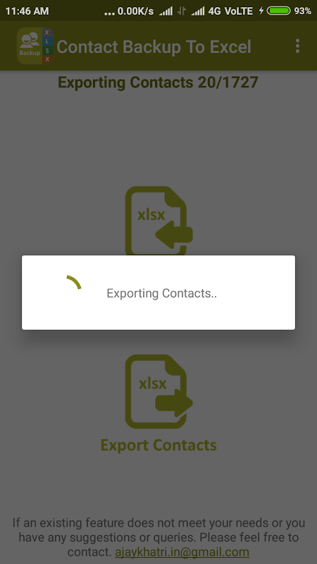 fichier Excel est créé dans la mémoire du téléphone Nom du dossier « Sauvegarde Contacts pour Excel ».