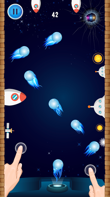 A ball travels across the screen. When a you touch, the ball bounces upside . The player loses when the ball touches the side object of the screen. To prevent this from happening, the player has a movable paddle to bounce the ball upward, keeping it in play. Your control on hands and level of attentiveness will decide the destiny of jumping ball. After achieving the goal, the hole in the wall will get bigger to pass through it and go for the next hurdle in queue.