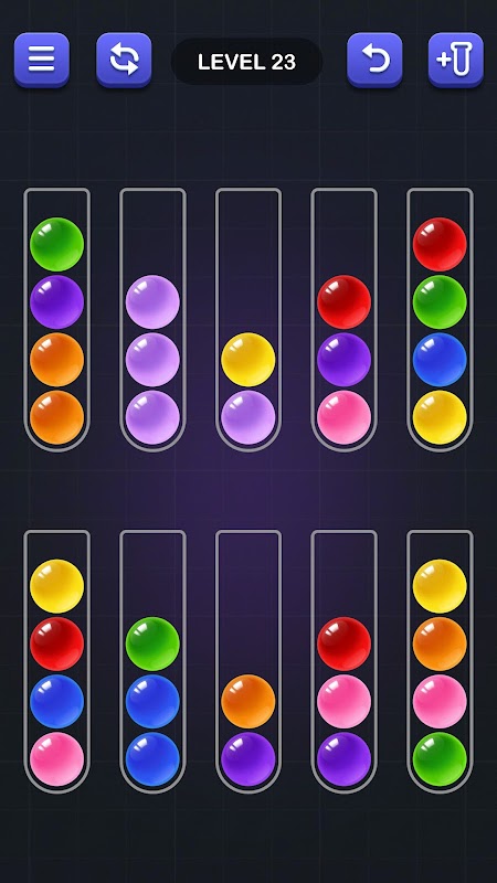 Ball Sort offre un mélange savoureux de défis, de tri par couleur et d'une expérience stimulante pour tuer le temps. Stimulez votre esprit avec des jeux de tri de boules colorées qui impliquent des résolutions d'énigmes astucieuses et des manœuvres logiques, ce qui en fait un choix idéal pour ceux qui recherchent un excellent moyen de soulager leur stress et leur anxiété.
