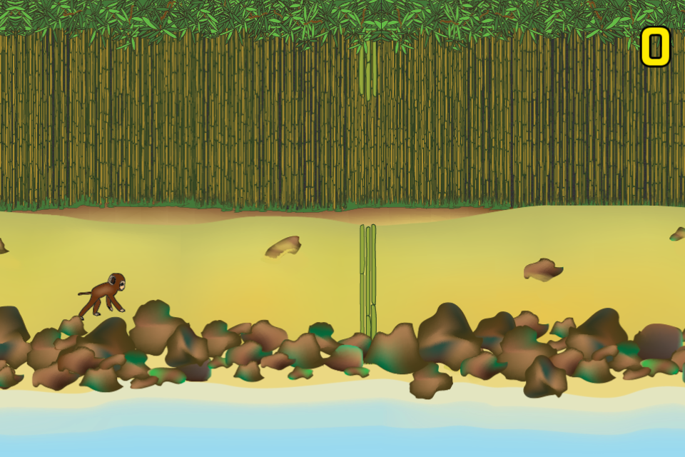 Tap to jump over short bamboos, hold & release to jump over higher bamboos.
