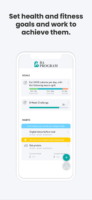 Avec l'application BAProgram, vous aurez accès à des programmes d'entraînement spécialement conçus pour vous aider à protéger votre investissement en chirurgie plastique ! Vous pouvez suivre et suivre vos entraînements, accéder à des vidéos d'exercices, suivre vos habitudes de vie, vos mesures et vos résultats, le tout avec l'aide de votre coach.