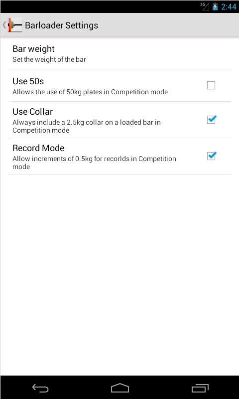 Une application simple pour aider au chargement correct d'un bar ou d'haltérophilie haltérophilie, dans les compétitions ou dans le gymnase.