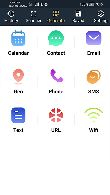 — Le scanner peut scanner et lire des codes-barres de toutes sortes tels que produit, lien, texte, contact, événement de calendrier, e-mail, SMS, Wi-Fi, emplacement sur la carte. Certaines options sont fournies à l'utilisateur après que chaque type de code à barres a été scanné individuellement, afin qu'il puisse faire ce qu'il veut. Vous pouvez même utiliser le scanner pour scanner le coupon afin d'obtenir des réductions et d'économiser de l'argent.