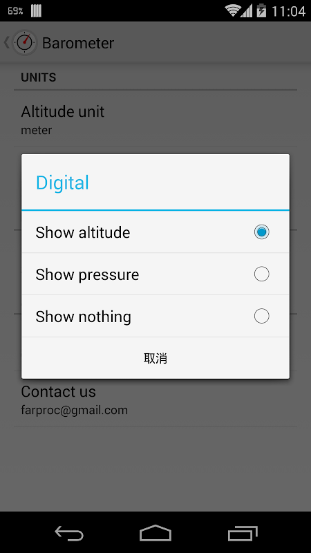 Show you the atmospheric pressure and altitude using the barometer sensor of your device.