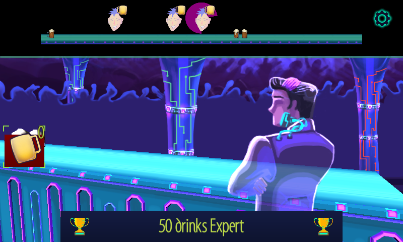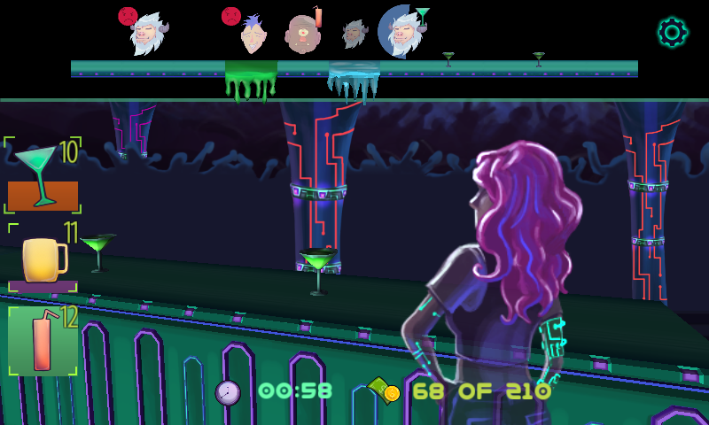 Chaque match que vous jouez est une journée de travail. Votre but est de gagner assez d'argent pour atteindre l'objectif de la journée. Vous gagnez pointe en jetant les boissons aux clients qui en font la demande. Le plus vite vous leur donnez ce qu'ils veulent, plus vous gagnez pointe. Pour jeter la boisson, il suffit de toucher l'écran et film. Lorsque vous relâchez le doigt la boisson sera jeté à la vitesse que vous avez déplacé votre doigt!