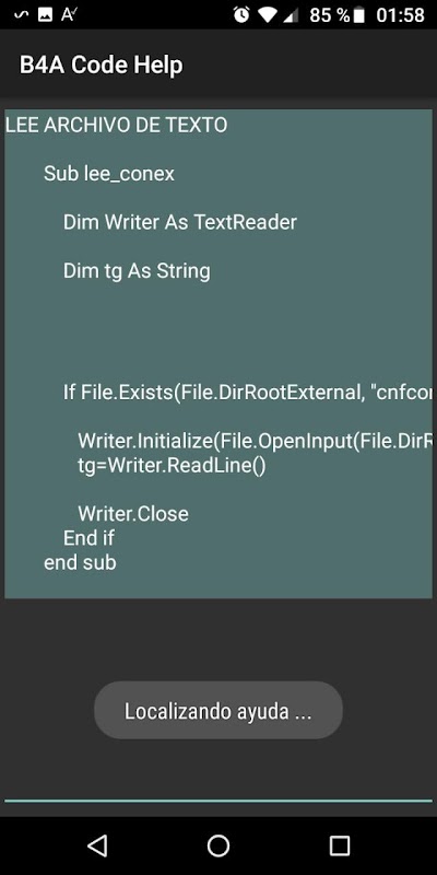 Code d'aide pour les programmeurs dans B4A. Copiez le code à coller dans d'autres applications