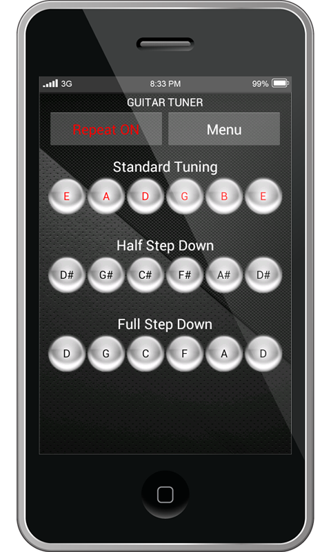 chords by clicking on the chord icon. There's also simple guitar tuner