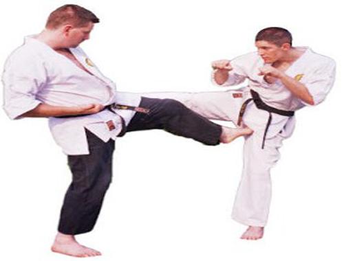 Kumite: Pour les courants de "contact direct" tels que Kyokushin, les pratiquants de karaté sont habitués à faire du kumite depuis la ceinture bleue.