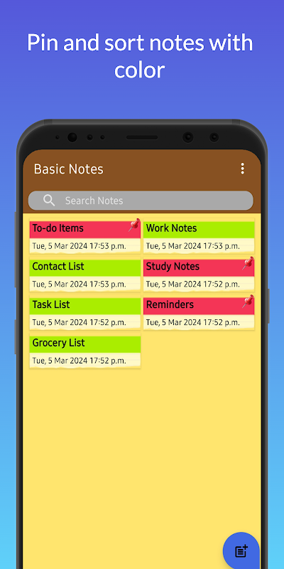 Le magnifique code couleur graphique sépare vos notes importantes des autres notes. Épinglez vos notes prioritaires et affichez-les ! L'épingle sur l'animation est une expérience géniale pour tous les preneurs de notes !