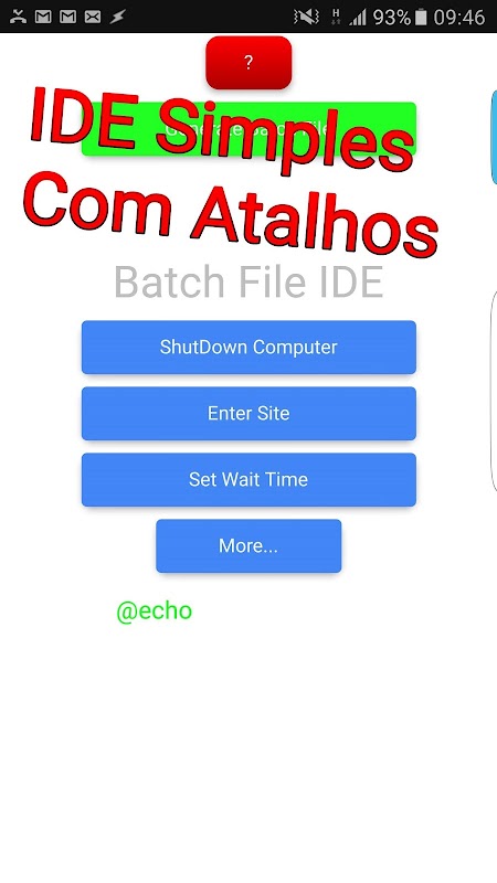 Paçoca Apps, Batch, IDE, shutdown/s, @echo, off, Aprender, Windows, Android, Pocket, Mobile, Apps, Developer, Desenvolvedor, Programador, Atalhos, Programar, Linguagens, Desenvolver, Criar, Exportar, .bat