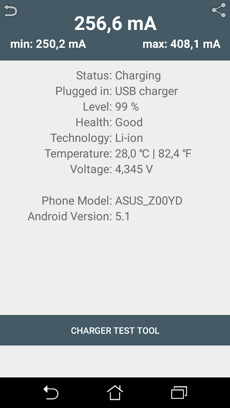 The Battery+ also identifies the charge / discharge speed of your device, in mA.