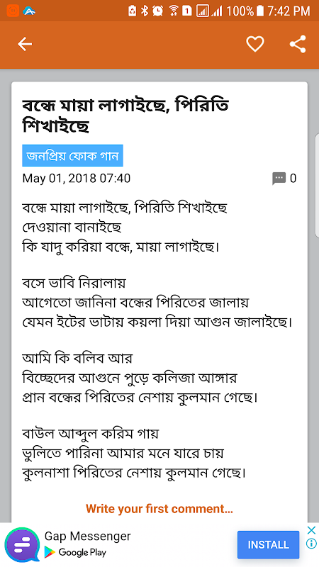 জনপ্রিয় সব বাউল গানের (Baul Song) লিরিক্স নিয়ে বানানো আমাদের এই অ্যাপ। যেখানে বাউল সম্রাট লালন শাহ (Lalon Song) জনপ্রিয় গানের লিরিক্স সহ বাংলার (Bangla Baul Song) ছড়িয়ে ছিটিয়ে থাকা অনেক গুনিমান বাউল শিল্পীদের গানের লিরিক্স সংরক্ষণ করা হয়েছে। এখানে যে সব বাউলের গান লিপিবন্ধ করা হয়েছে তা নিম্নরূপ