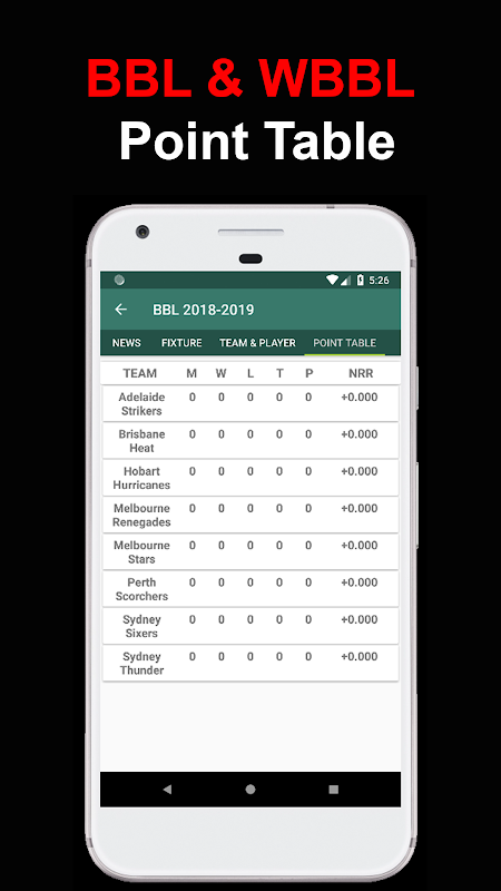 >> बीबीएल 2018 -19 प्वाइंट टेबल
