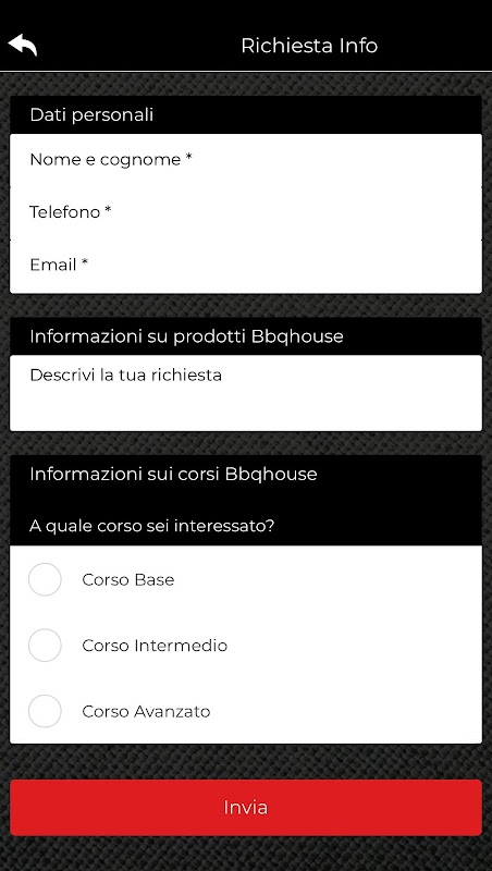 Dans notre application, vous pouvez accéder à notre boutique en ligne et acheter nos barbecues et tous les équipements. Vous trouverez un large éventail de recettes gratuites à préparer chez vous, réparties en catégories. Vous pouvez également ajouter vos recettes et photos de votre brasserie à notre groupe. Vous pouvez également afficher tous les événements et salons programmés, réserver des cours de base, intermédiaires et avancés. Et pour tous ceux qui ont de nombreuses surprises et promotions à venir!