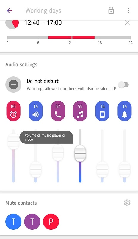 • With this volume manager app you can set do not disturb scheduler: maintaining your privacy over the phone will be easy. No sound notification will bother you.