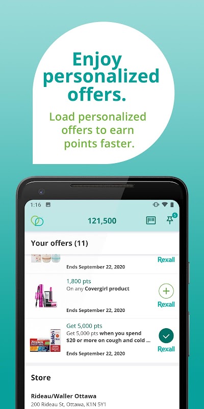 Accumulez des points de récompense chez Rexall et sur Well.ca. 25 000 points de récompense = 10 $ de valeur échangeable.