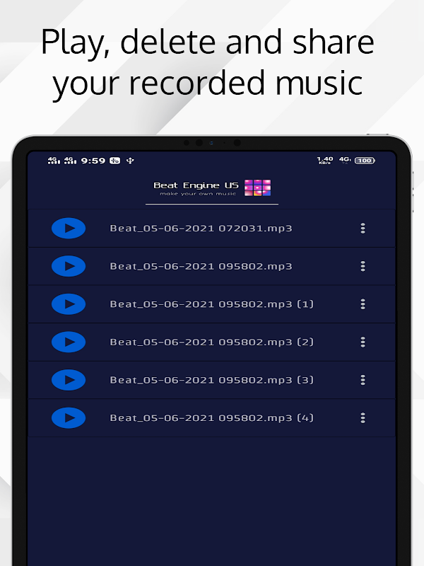 Beat Engine US is an amazing five instruments pads app that gives you the opportunity to make charming music, also with your voice and record it.