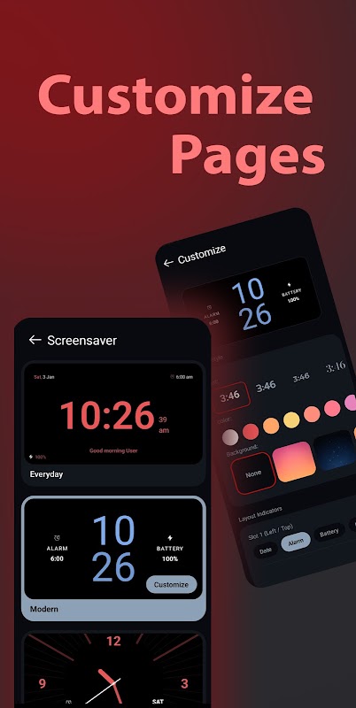 2. Appuyez sur Personnaliser pour modifier les couleurs, l'arrière-plan et la disposition.