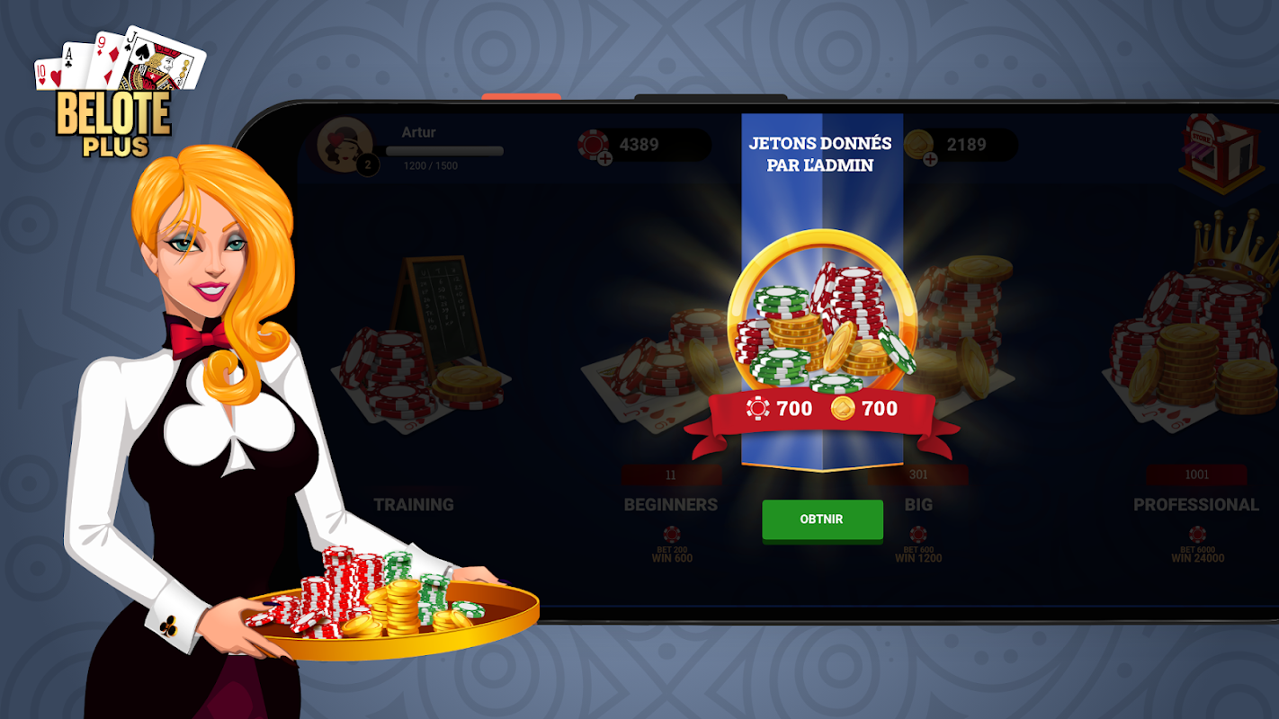 Ne manquez pas l'opportunité de rejoindre la Communauté de Belote française. La Belote est connue sous des noms: belote coinchée, belote classique, bazar belote, belote bridgée, belote contrée ou encore la coinche. Vous pouvez profiter d'un célèbre jeu de belote avec de vraies personnes où vous voulez, quand vous voulez. Jouez à la Belote +, améliorez vos compétences et devenez un vrai Pro. Au tout premier tournoi, vous verrez que ça valait la peine de jouer.