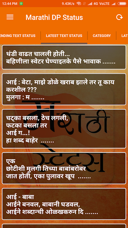 If you want to express your love,romantic feelings, your sadness, your love stories and breakup stories, laugh, say sorry, set status of social networking apps,greet a friend, congratulate someone, wish someone on their birthday, all you need to do is just pull to refresh your screen and you will get new contents .