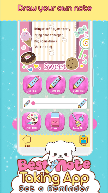 What do you think of a “reminder app with alarm”? If you need a note taking app, then you have found a sweet note reminder that will serve you as well. Use “notes making app” every day to remind to post it notes – all obligations that you have. In addition to notes app, you will also have an interesting lottery. This means that every day in this 💋Best Note Taking App - Set a Reminder💋, you can get new gifts. You are entitled to withdraw your gifts 4 times. Choose wallpapers free on your “cute sticky notes”, decorate it best you can and add reminder also. Add custom sticky notes and also you can choose a large selection of cool stickers. “Cute stickers” with panda and other sweet icons are free. Try calendar reminder once and you will adore this “sticker app”.