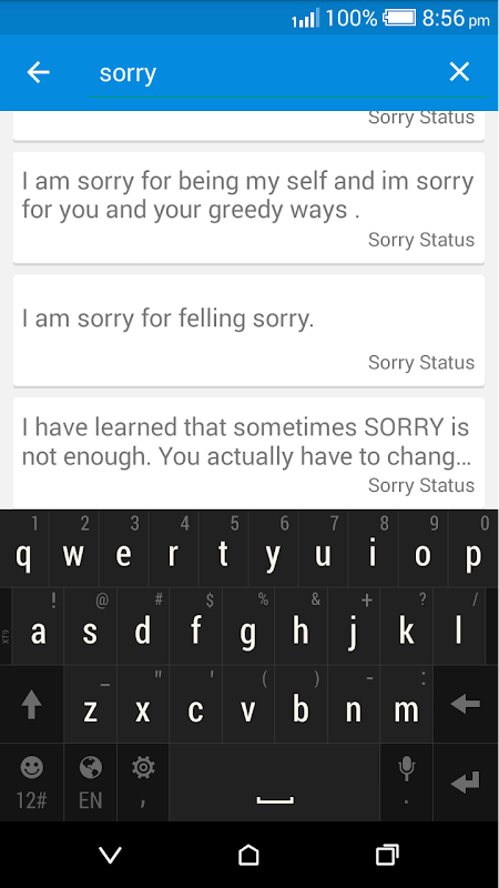 La meilleure application et une immense collection de statuts pour toutes les occasions pour le statut de mise à jour rapide dans les sites sociaux et pour ne importe quelle application de chat, etc. Dans ce grand statut social Collection application avoir chacun et toutes les autres catégories de statut comme statuts drôle, Rencontres statuts, les statuts du Nouvel An, statuts Sad, Nice statuts, statuts de Man, statuts de femme, statuts Clever, statuts de la vie, les statuts de Joke, ami statuts et beaucoup plus état sont là-bas.