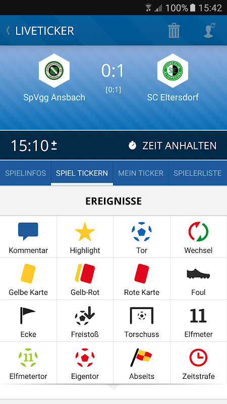 • Connexion BFV.de à votre profil d'utilisateur et donc au fan ticker, avec lequel vous pouvez cocher tous les jeux en Bavière