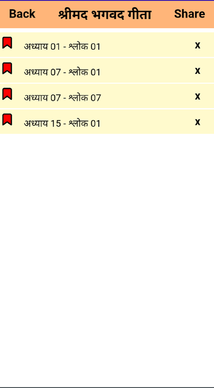 Tous les "Adhays" et "Shlokas" sont disponibles en texte sanskrit avec des significations hindi faciles à comprendre. Les utilisateurs peuvent mettre en signet "Shlokas" pour un accès facile. Les utilisateurs peuvent également faire une liste de favoris Shlokas. Les utilisateurs peuvent facilement partager des "Shlokas" avec leurs amis et leur famille à l'aide d'applications de messagerie ou de services de messagerie. Nous prévoyons d'ajouter de nombreuses autres fonctionnalités à cette application pour la rendre plus précise, plus facile à utiliser et plus interactive.