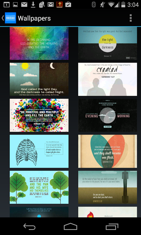 La fonctionnalité d'écran vous permet de partager vos créations préférées Bible via Facebook, Twitter ou par courriel. Vous pouvez également enregistrer les images sur votre appareil, puis utilisez l'application Photos pour les définir comme votre écran de verrouillage ou la page d'accueil art.