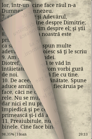 Aceasta aplicatie pastreaza forma de carte un Cuvantului Lui Dumnezeu. Paginile au aspect de pergament si permite Schimbarea culorii de utérine.