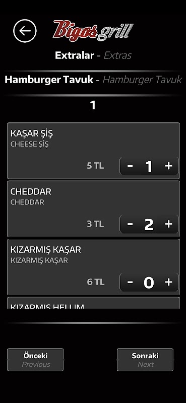 Demande de commande mobile Bigos Grill