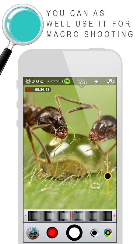 Super digital binocular and magnifier app is the best for easily super zooming (30X zoom), with it`s handy zoom in and zoom out scroller It is too easy to see the great photos in little appearance and vice-versa. There is no need to carry a big binocular with you. There can be no doubt, It is an excellent app and be ready to use it. It can also be used as an magnifyer for macro photography.