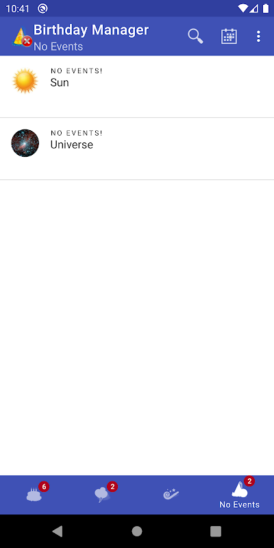 Vous ne pourrez plus oublier les anniversaires et les anniversaires de quiconque grâce à la liste pratique ordonnée par jours manquants et notifications de l'application.