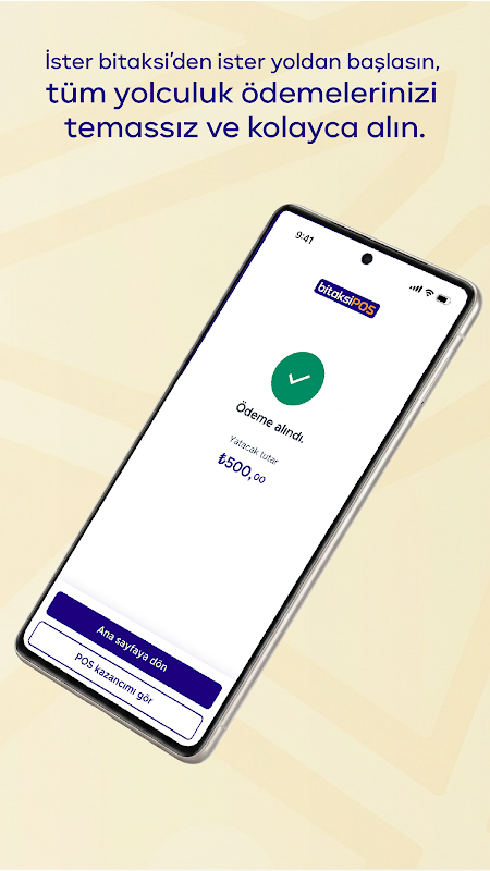 Avec BitaksiPOS, vous pouvez transformer votre téléphone en terminal de point de vente et accepter les paiements sans contact.