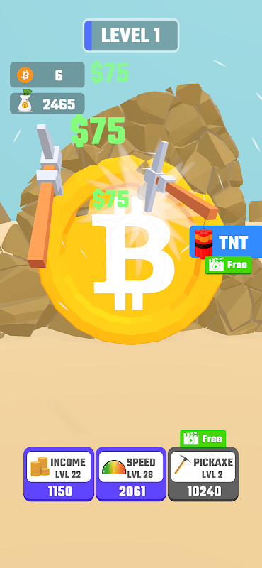Commencez votre aventure avec une pioche basique et frayez-vous un chemin jusqu'à vos premiers satoshis. En minant, vous accumulez des bitcoins, que vous pouvez ensuite réinvestir pour améliorer vos outils de minage. Chaque amélioration améliore votre efficacité, vous permettant d'éliminer les roches tenaces plus rapidement et d'engranger plus de cryptomonnaies.