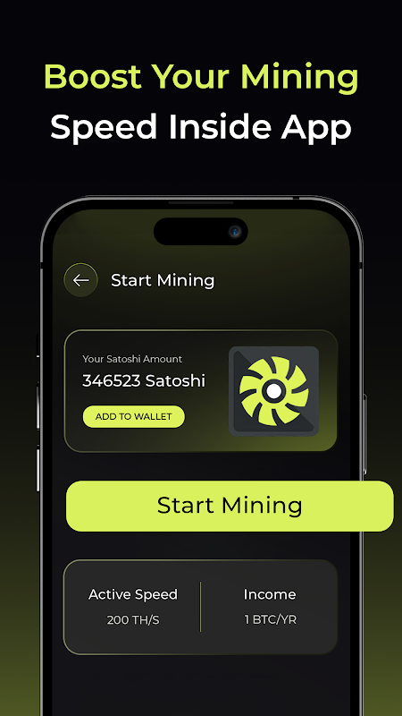 Surveillez les performances des mineurs, débloquez des améliorations et augmentez votre solde de minage intégré au fur et à mesure de votre utilisation.