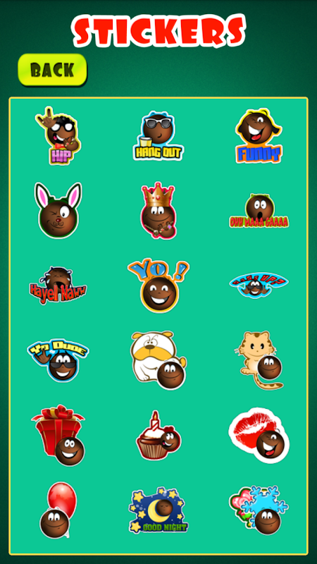 Sure to please a multicultural crowd. Funny black emoticons and stickers with witty or common one liners.