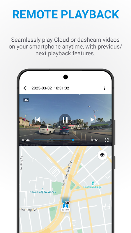 Bénéficiant d'une connexion Internet mobile ou embarquée dans la voiture et d'une dashcam BlackVue, BlackVue Cloud vous connecte à votre voiture via le Cloud. En utilisant l'application BlackVue sur votre smartphone ou votre tablette, vous voyez en temps réel où se trouve votre voiture et ce qui se passe autour d'elle.