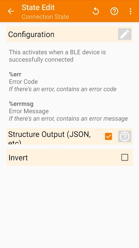 Cet événement est déclenché si vous êtes connecté au périphérique BLE via l'action de connexion et que le périphérique BLE envoie un message. Le message est capturé dans la variable locale %message dans la tâche que vous attachez à l'événement.