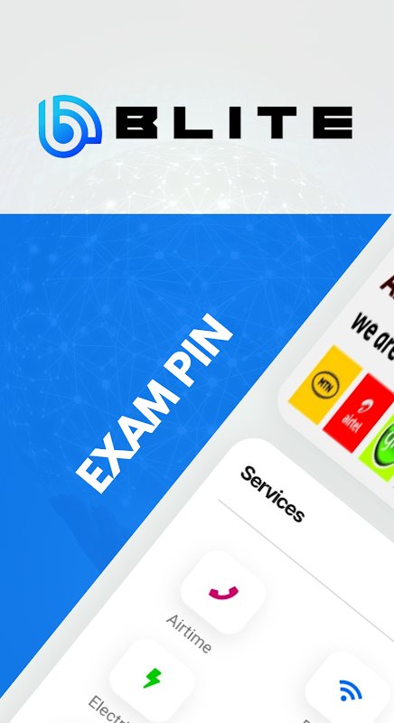 Blite offre un temps d'antenne abordable pour tous les réseaux (MTN, AIRTEL, GLO, 9MOBILE), les forfaits de données, le paiement des factures d'électricité, l'abonnement à la télévision par câble, le code PIN d'examen (WAEC, NECO), la carte de recharge, la carte de données, le service Smile Topup et bien plus encore.
