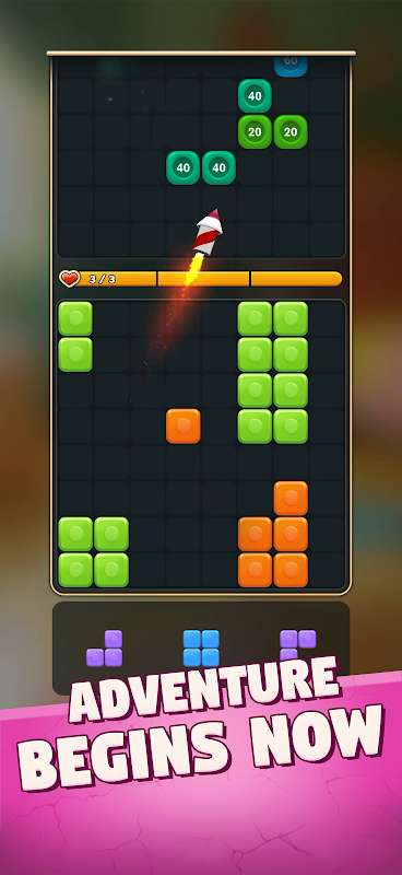 Placez des blocs pour effacer des lignes en mode Classique, ou affrontez des vagues d'ennemis en mode Aventure pour une dose supplémentaire de sensations fortes.