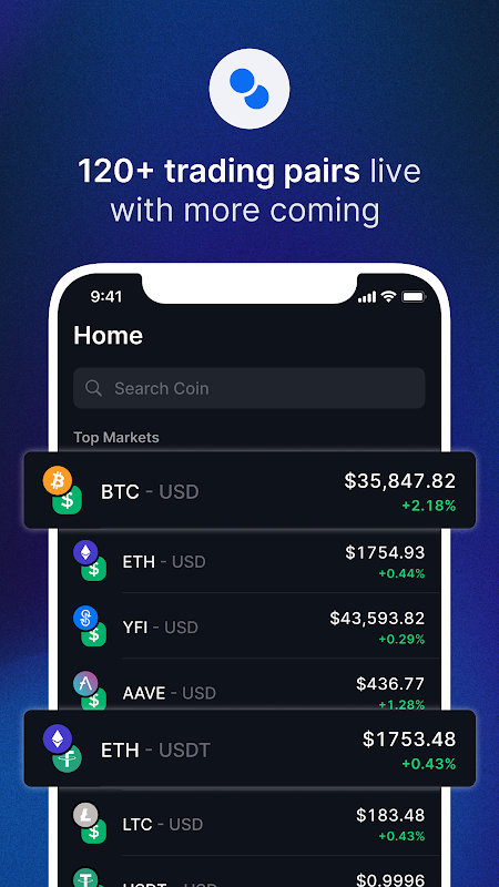• Négociez BTC, ETH, DeFi, stablecoins, et plus