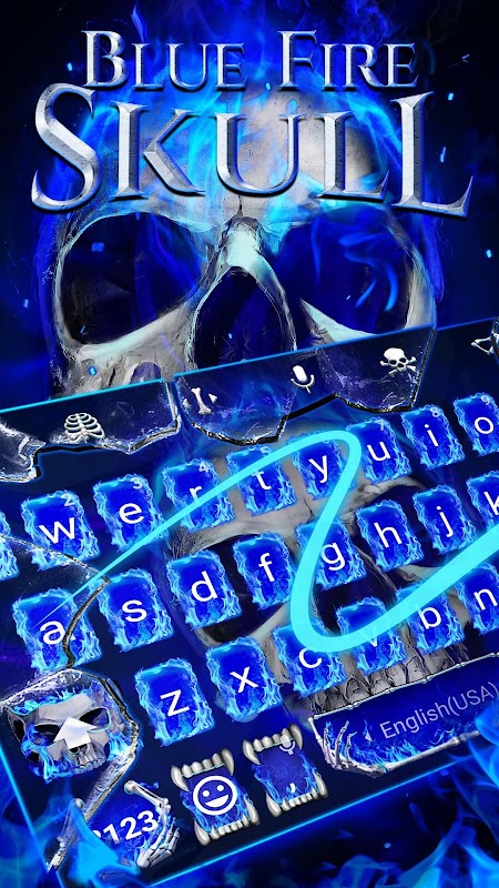 ☑ Keyboard theme for Blue Fire Skull Emoji Keyboard Theme style.